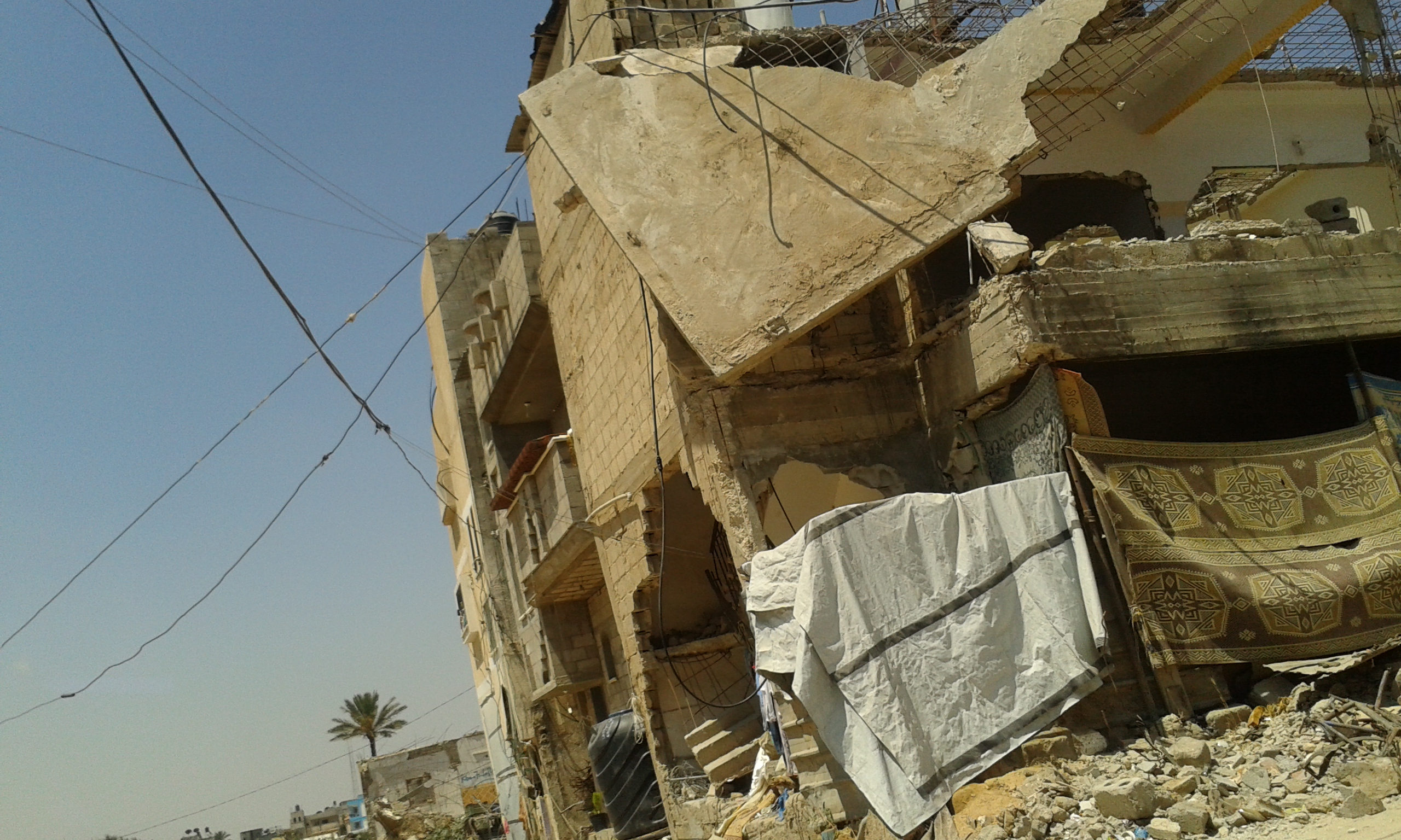 Andiamo a Rafah, zona a sud al confine con l’Egitto. Lo scenario si ripete. Case bombardate accanto a quelle abitate.