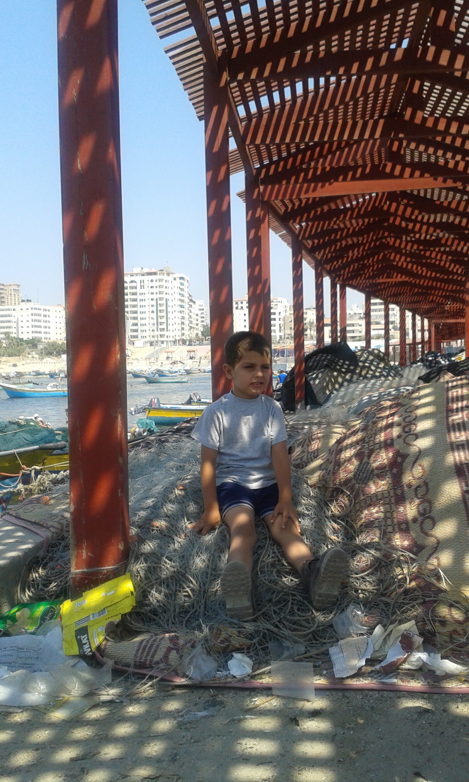 Passeggiamo al porto dove sono attraccate le barche dei pescatori a cui non è permesso andare oltre le tre miglia dalla costa, pena il fuoco “difensivo” della marina israeliana. Anche i contadini devono tenersi lontani dal confine di terra con Israele. Non hanno accesso alla buffer zone, un cordone “difensivo” che occupa per due chilometri il territorio palestinese e che essendo zona militare rende inaccessibili i suoi campi coltivabili.
