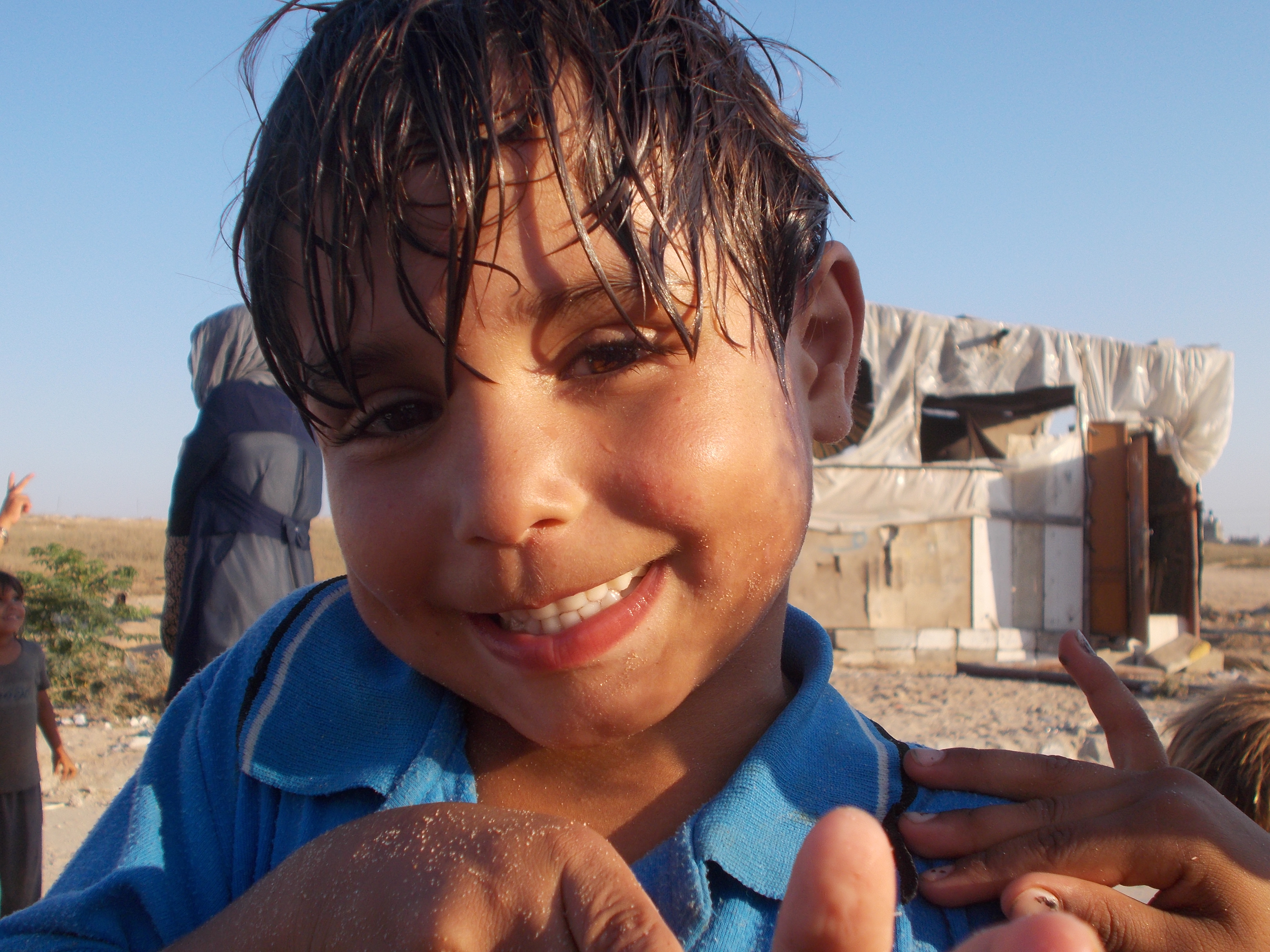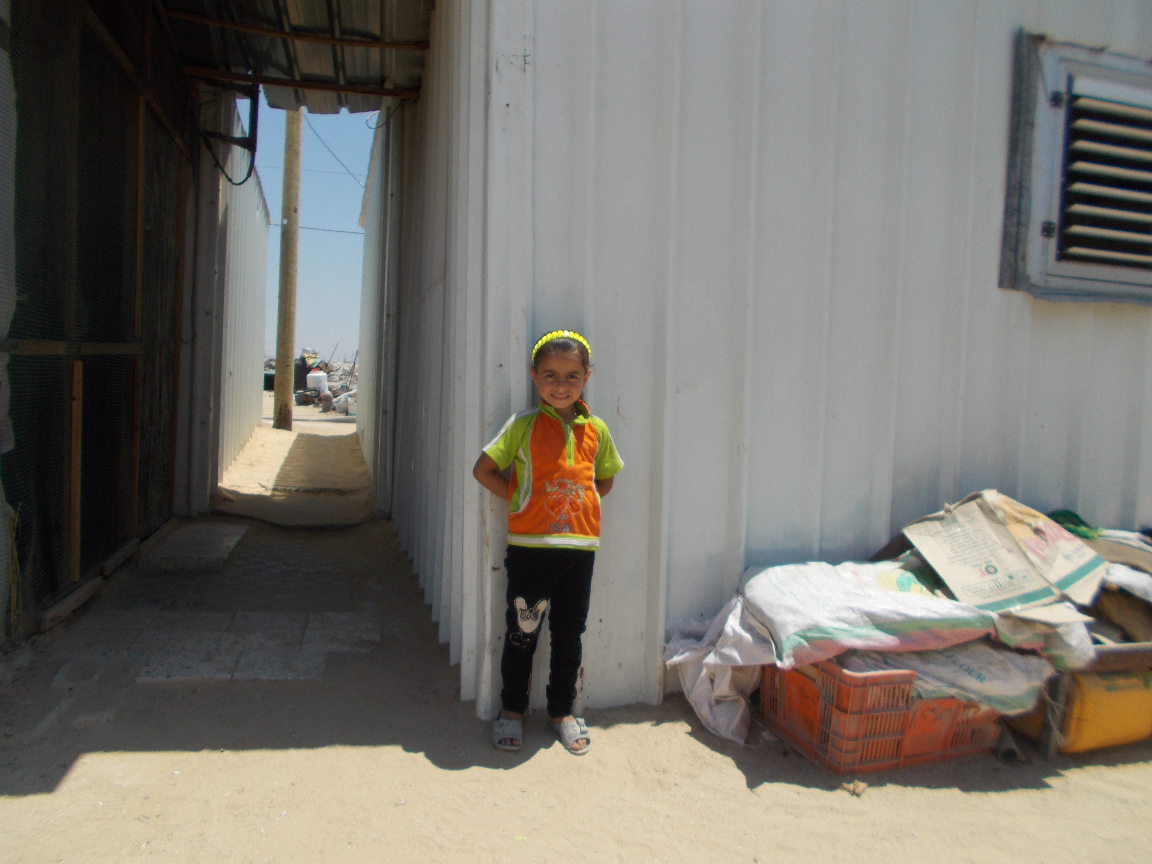 I ferri del cemento armato come artigli, le case si intuiscono dai loro scheletri. Si capisce che erano delle costruzioni massicce, con più piani e molte vite. Coloro che ci abitano invece non ci sono più. I sopravvissuti, sono al di là della strada. Sono le comunità beduine che vivono in dei container donati dall’Organizzazione Human Appeal, caldi, scomodi e con delle infiltrazioni di umidità che rendono molle il pavimento sotto i piedi. Le donne siedono tutte insieme attorno ad un tavolino vicino all’unico presidio medico, garantito dall’organizzazione Red Crescent Society. Ci sorridono e indicandoci la borsa chiedono dollari. Nonostante ci siamo sistemate le sciarpe come hijab sulla testa, per dare meno nell’occhio e per avere più rispetto del loro mese sacro del Ramadan, non passiamo inosservate. Siamo internazionali venuti a curiosare, a rubare i sorrisi sdentati dei loro bambini con le nostre macchine fotografiche. Non portiamo soldi, non portiamo nuove case, non portiamo cibo, né medicinali. Portiamo occhi che guardano, inorridiscono, ma poi sono costretti ad andare via.