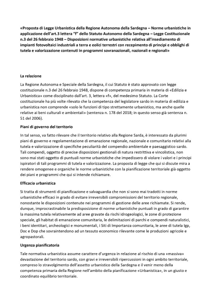 Chi firma questa proposta di legge non lo fa per spirito di parte ma perché la cittadinanza prende coscienza di se stessa e così si rimette in cammino verso il futuro, verso la cura della terra e dell’esistenza dignitosa del nostro popolo in Sardegna.